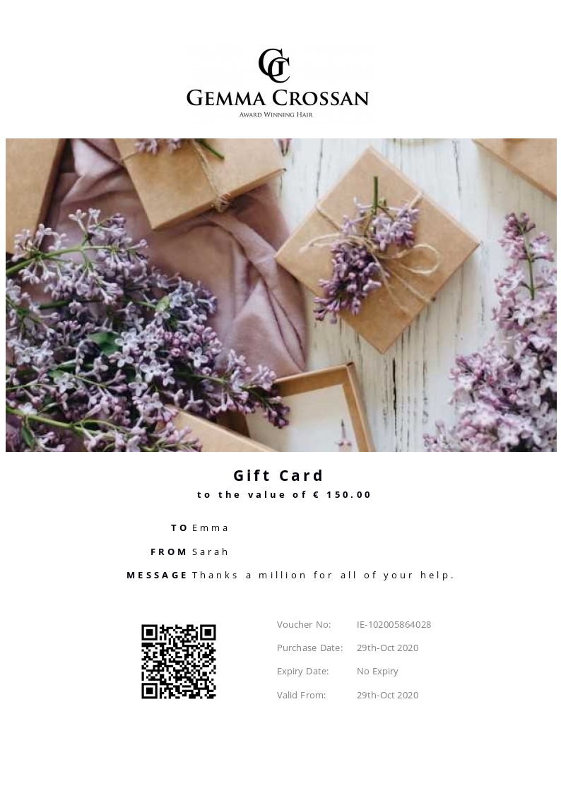 Gemma Crossan Award Winning Hair allows you to purchase instantly printable gift vouchers, special offers and tickets using the Voucher Connect platform.